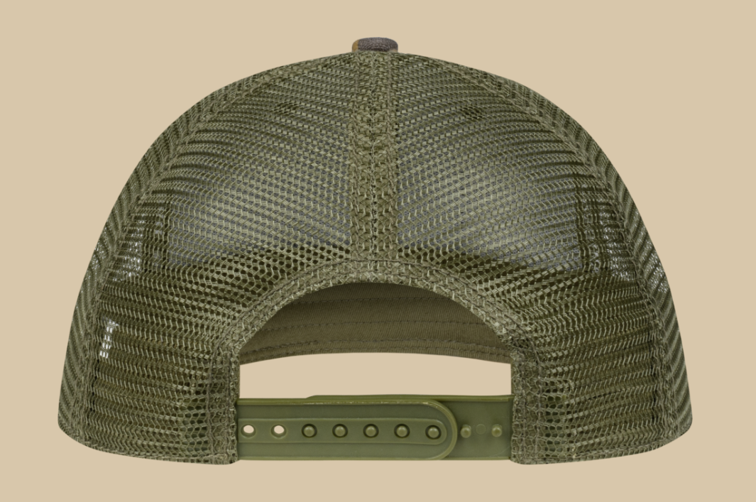 Moderne MAUSER Mesh‑Cap im Retro‑Camo mit Belüftung und individueller Größenverstellung.