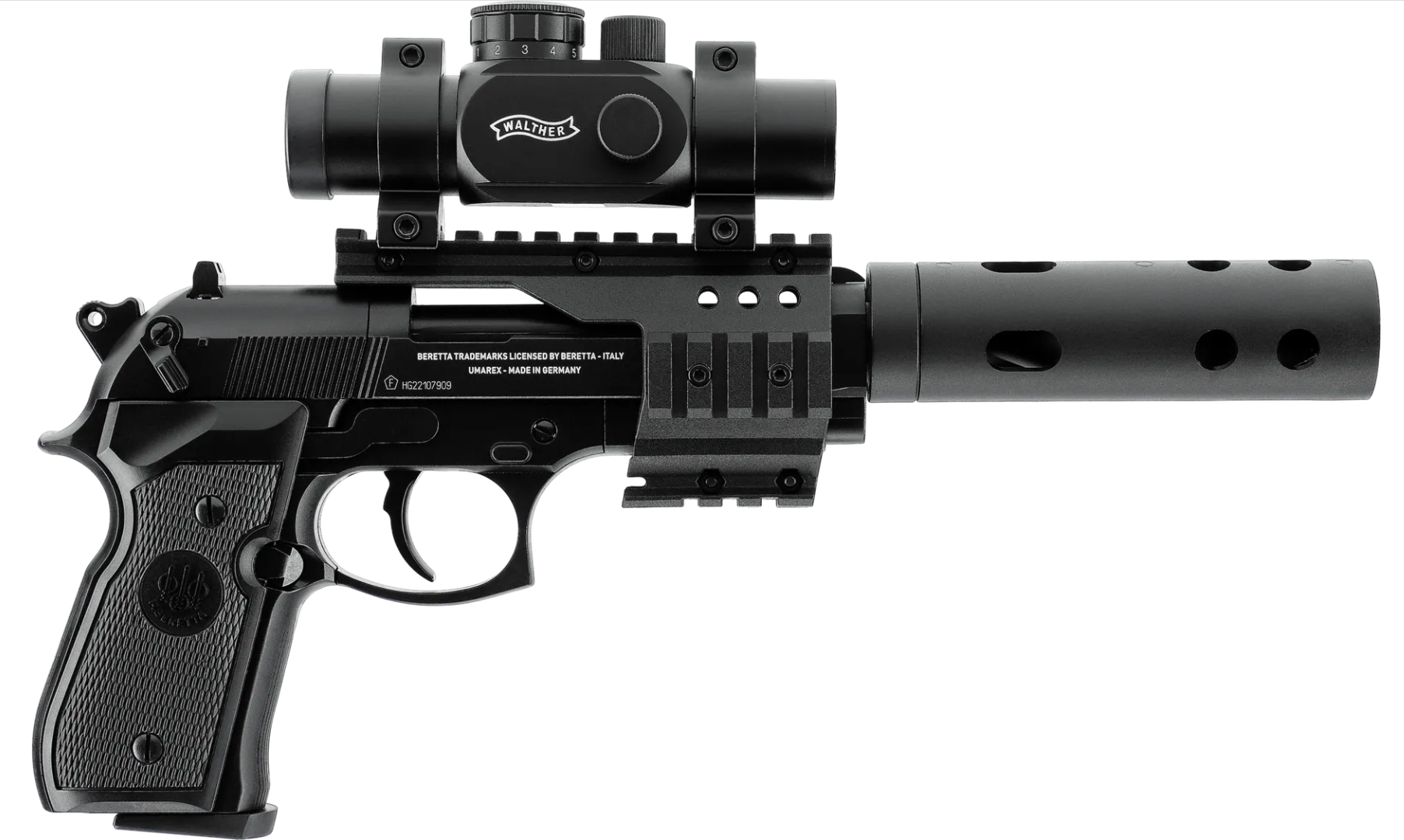 Als Plattform dient ein wahrer Klassiker. Nicht nur genießt die Beretta MOD. 92 FS weltweit höchstes Ansehen im Behördensektor sowie zivil, auch als CO₂-betriebene Airgun gehört sie seit Jahren fest zum Umarex-Sortiment. Entwickelt und gefertigt an unserem Hauptsitz in Deutschland garantiert sie Höchstleitungen bei Verarbeitung und Präzision.