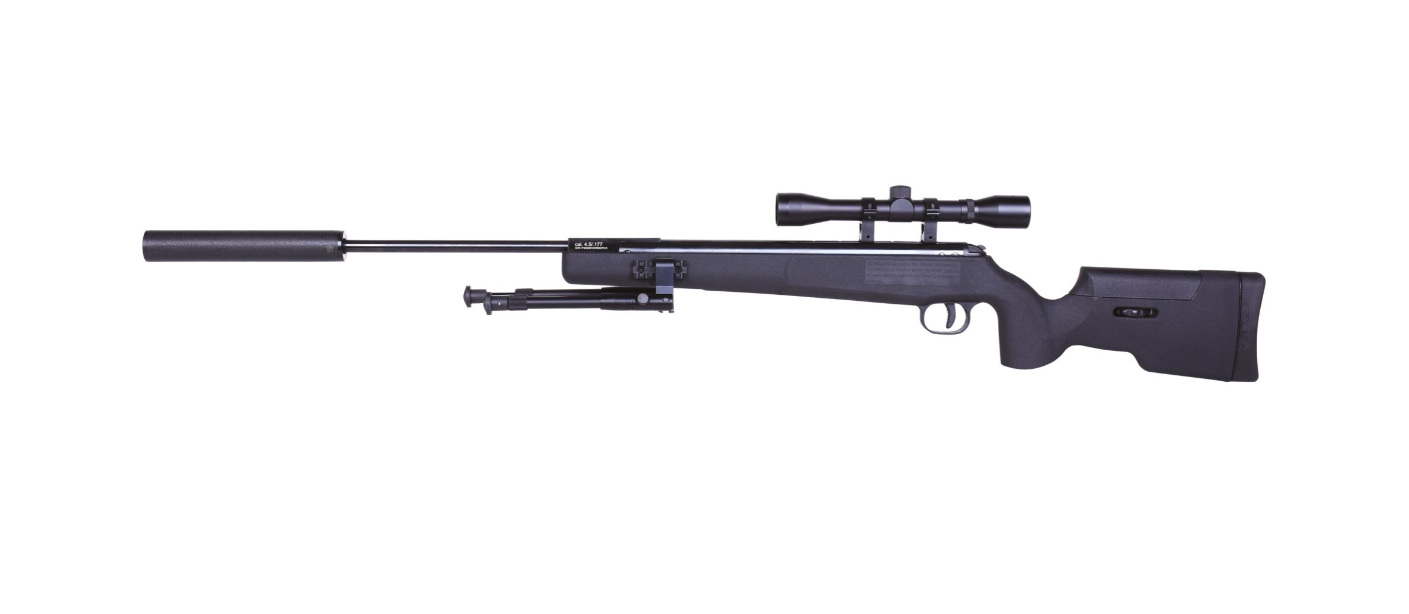 Das moderne airmaX® Luftgewehr SR1250S wird aus Metall und ABS-Kunststoff hergestellt und verfügt über eine verstellbare Schaftbacke, ein einstellbares Zweibein mit Klickmontage, ein Zielfernrohr 4x32 inklusive Zielfernrohrmontage und einem Schalldämpfer.