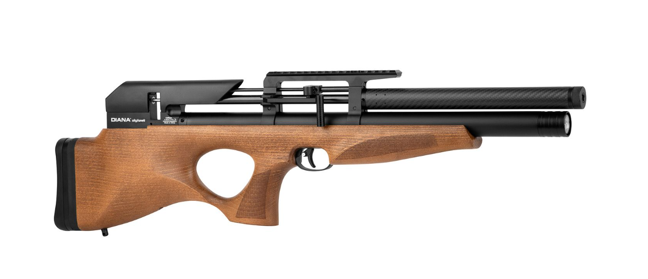Die neue DIANA skyhawk setzt Maßstäbe für Bullpup-PCPs. Mit einem leichten und gut ausbalancierten Design, Carbonlaufmantel für Schalldämpfung, integrierter Wangenauflage und höhenverstellbarer Schaftkappe bietet sie unschlagbare Präzision und Komfort. Zwei Manometer halten den Druck im Blick, während die 22mm Picatinny-Schiene vielseitige Zubehörmöglichkeiten bietet. Der Holzschaft mit Fischhaut-Textur und praktische Details wie Riemenbügelöse und M-LOK Schiene komplettieren das Paket. Eine Waffentasche ist ebenfalls enthalten.